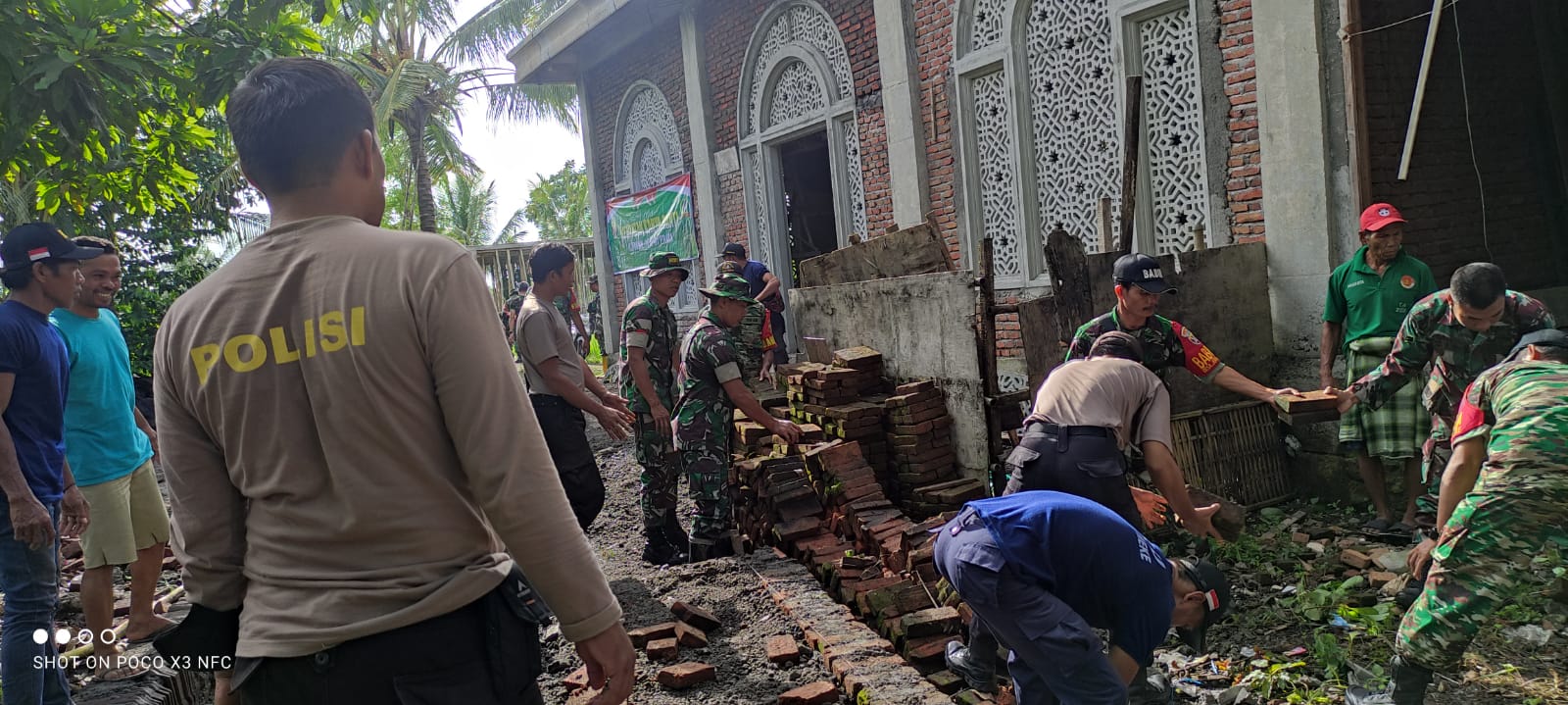 Bidik Nasional.id _ LOMBOK TENGAH, NTB – Kapolsek Praya Tengah bersama anggota TNI dan masyarakat setempat melaksanakan gotong royong di Musholla Annur, Kampung Batu Bowok, Dusun Alat, Desa Prai Meke, Kecamatan Praya Tengah Kabupaten Lombok Tengah Jumat 13/01/2023.