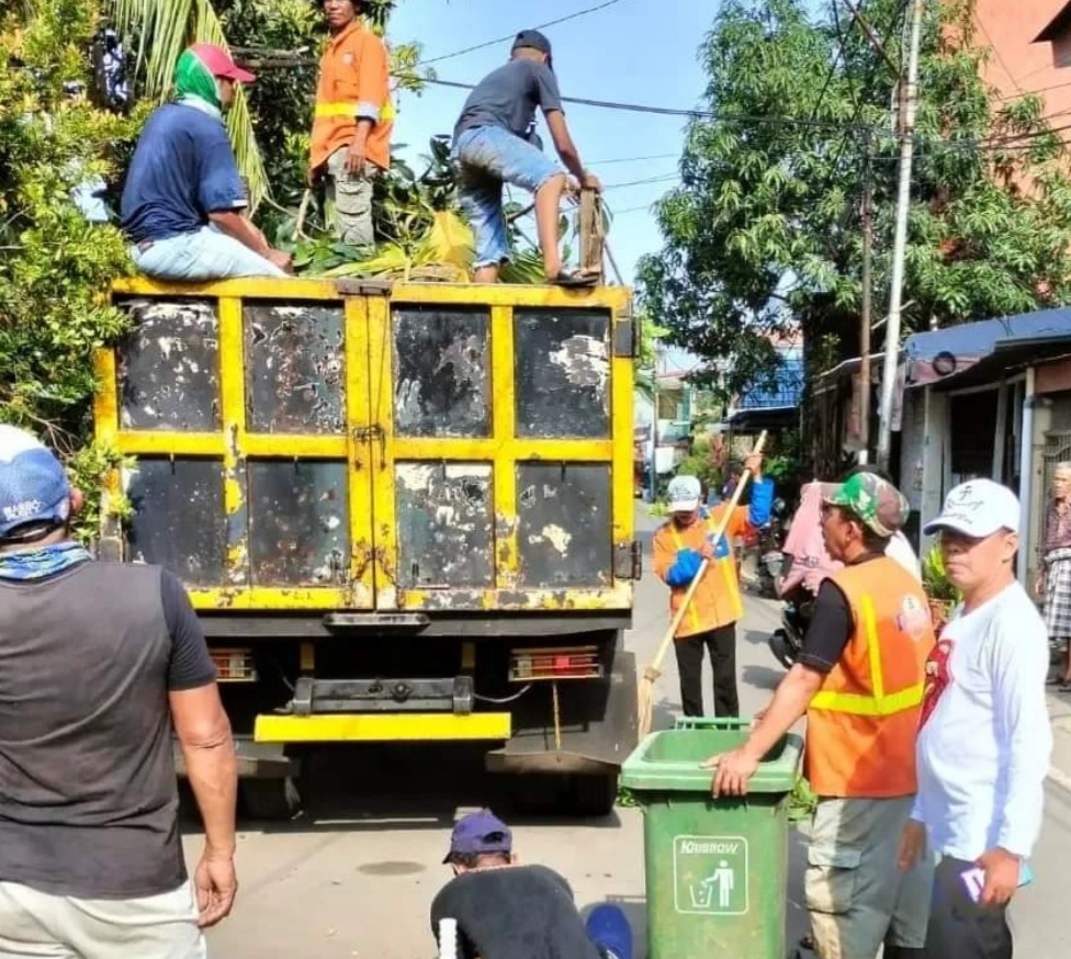 Juliaman terlihat kompak bersama warganya melakukan pemangkasan daun daun rimbun juga membersihkan sampah yang berserakah di jalan Seroja dan sekitarnya