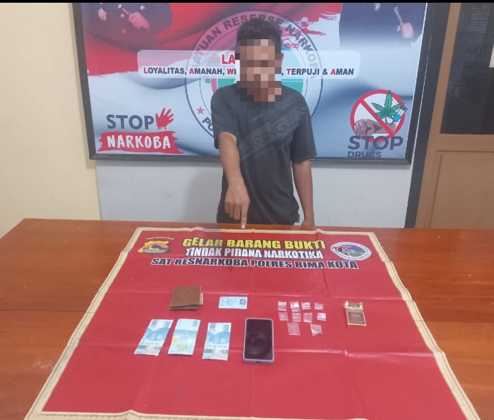 Bidik Nasional.id _ Kota Bima, NTB (16/01) – M (27) pengedar narkoba jenis sabu asal Rabadompu Barat Kecamatan Raba Kota Bima, akhirnya ketangkap Tim Cobra Alpha Sat Narkoba Polres Bima Kota Polda NTB.