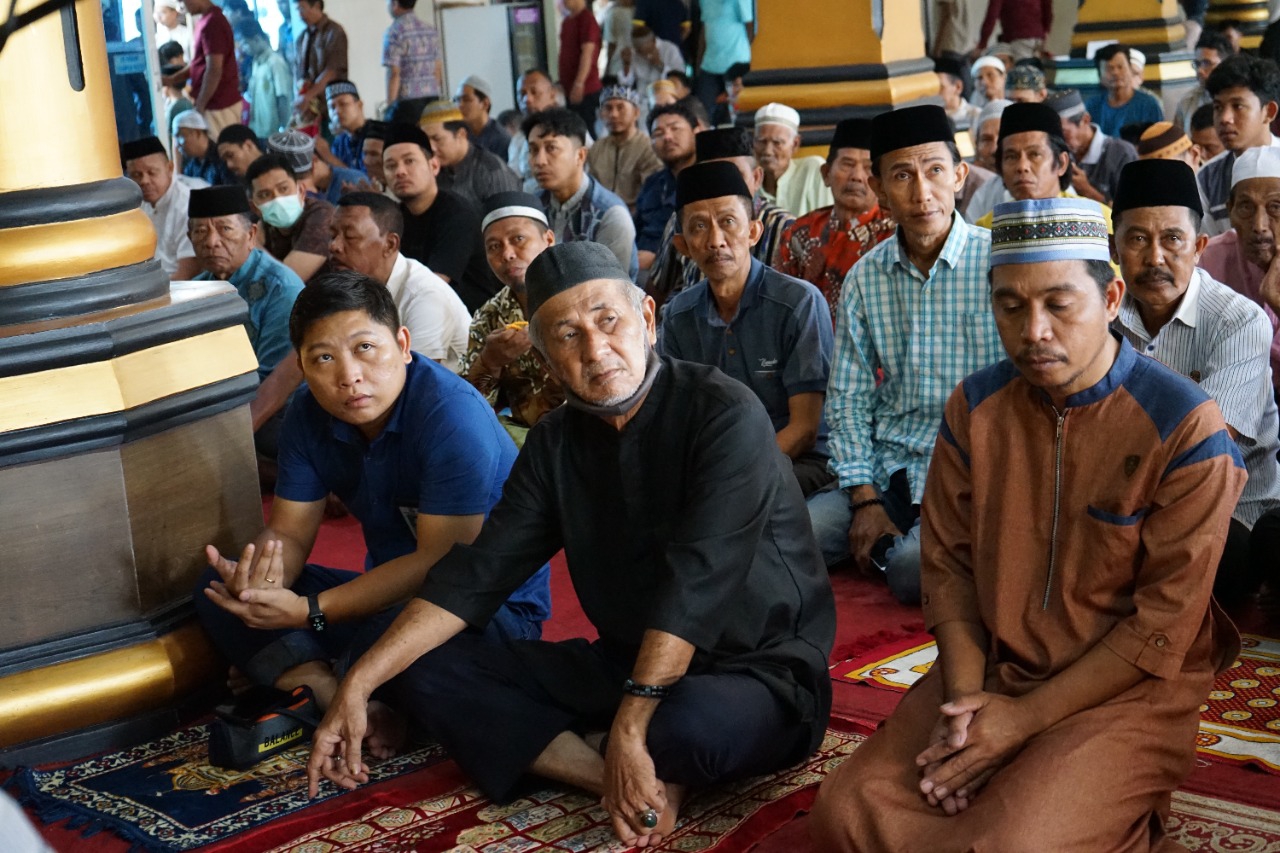 BN Online, Makassar—Camat Tallo, Alamsyah Sahabuddin, S.STP, M.Si mendampingi dr Udin Malik, Ketua Forum Kemanusiaan Kota Makassar (FKKM) shalat Jum’at di Mesjid Nurul Mukminin Jl. Teuku Umar, Kelurahan Suangga, Kecamatan Tallo, Kota Makassar.