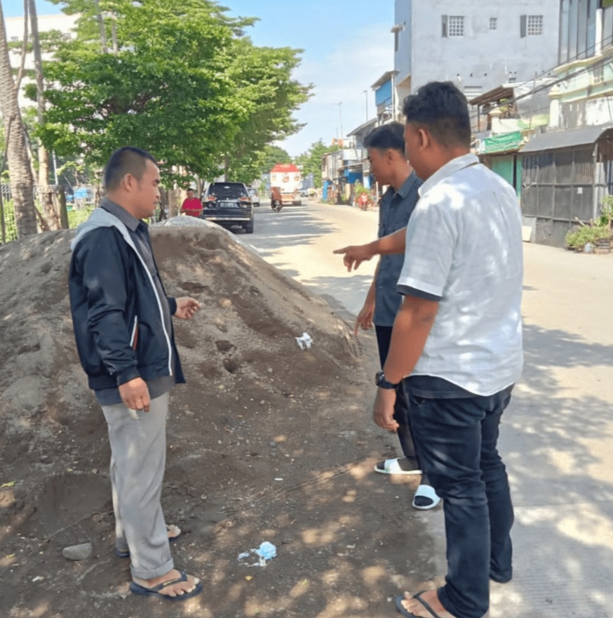 Anggota Pakandatto, Ismail Apriyanto dari kelurahan Tamalabba bersama Arief Hidayat, Pakandatto kelurahan Pattingalloang Baru, berkeliling kelurahan untuk mengawasi penanganan kebersihan di kelurahan Tamalabba, dan menemukan adanya timbunan material bahan bangunan berupa pasir, yang meluber hingga ke badan jalan.