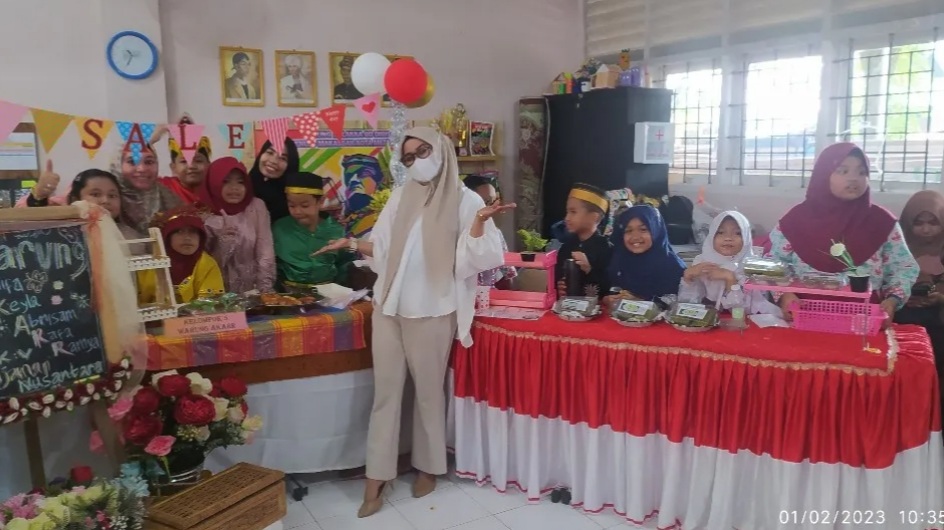 Ernianti, S. Pd, M. Pd, selaku guru kelas 3B mengatakan, pada hari ini kami menggelar pameran makan khas Nusantara.