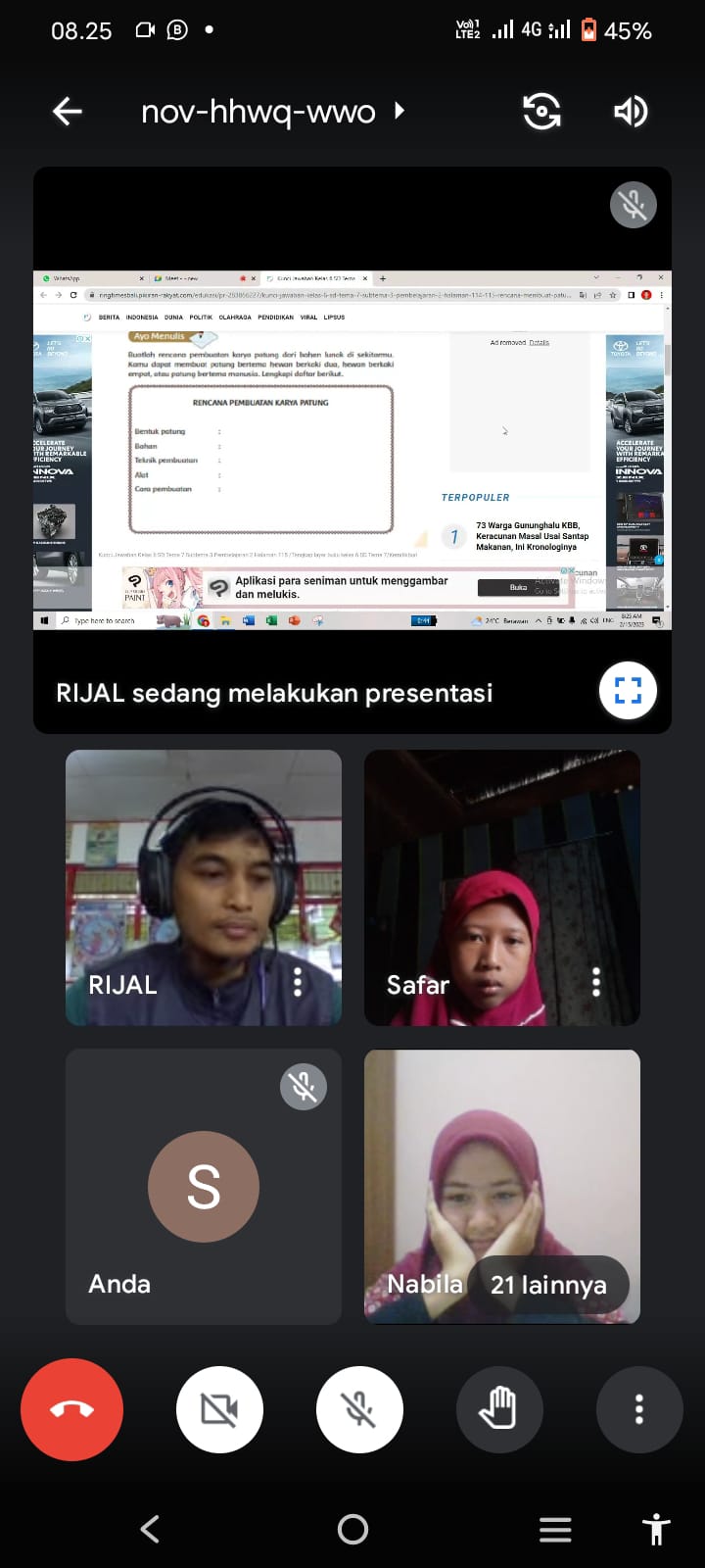 ” Daring ini mulai berlaku sampai Dua hari kedepannya , Insya Allah jika Cuaca Baik kembali maka kita akan melakukan Tatap Muka Lagi ” Harapnya Hijrah Nurja Husmal, S. Pd