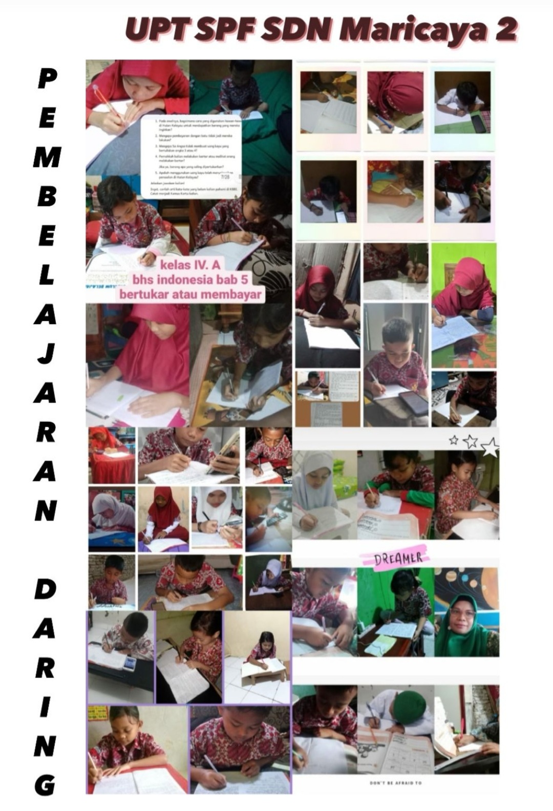 Menurut, Plh Kepala UPT SPF SDN Maricaya II, Sitti Nurbaety Ahmad, S.Pd., M.Pd, mengatakan bahwa kami mengambil keputusan belajar mengajar dengan sistem dalam jaringan (Daring) berdasarkan keputusan Walikota Makasssar melalui Dinas Pendidikan, membahas perihal kondisi alam yang ekstrim dan pastinya mengganggu aktivitas belajar mengajar.