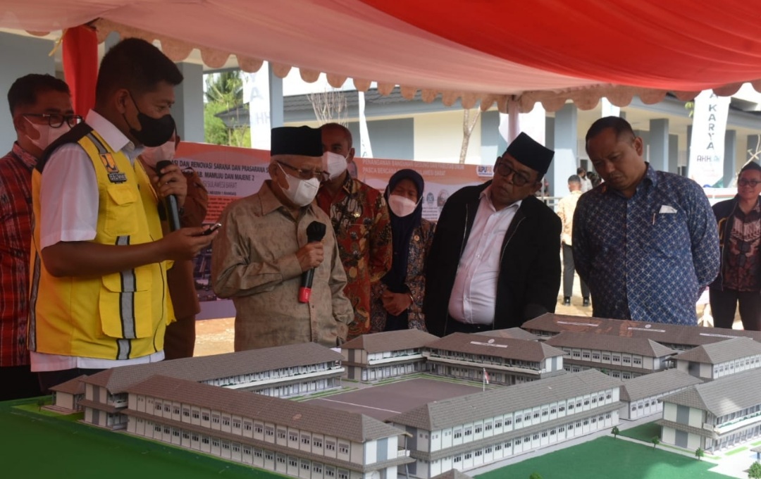 Dalam kunjungan tersebut , Wapres didampingi Pj Gubernur Sulbar Akmal Malik, Wakil Bupati Mamuju Ado Mas’ud dan Kepala Dinas Pendidikan Provinsi Sulbar, M Natsir melihat kondisi sekolah yang telah selesai dikerjakan pasca gempa yang melanda Mamuju.