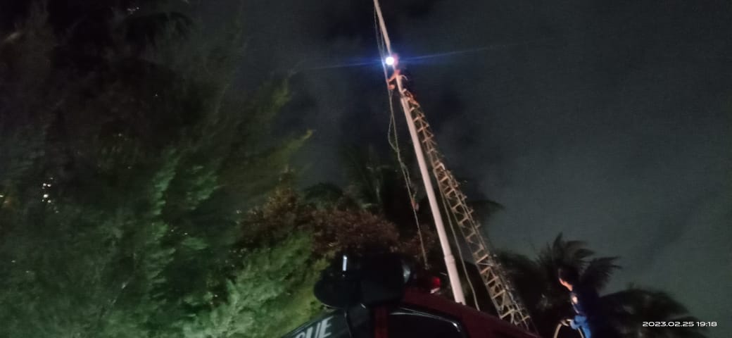 BN Online, Makassar–‘-Anggota Dinas Pemadam Kebakaran Kota Makassar bergerak cepat mengganti tali bendera merah putih di Kantor DPRD Kota Makassar akibat putus.