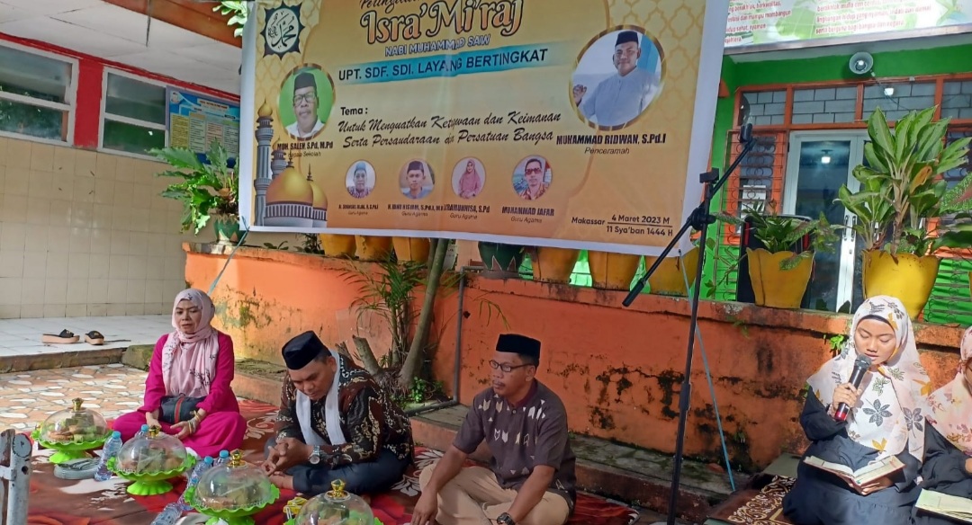 BN Online, Makassar — UPT SPF SDI Layang Bertingkat Makassar gelar Peringatan Isra Miraj Nabi Muhammad SAW yang bertajuk untuk Menguatkan Ketakwaan dan Keimanan Serta Persaudaraan di persatuan Bangsa di lingkup sekolah, Sabtu (4/3/2023).