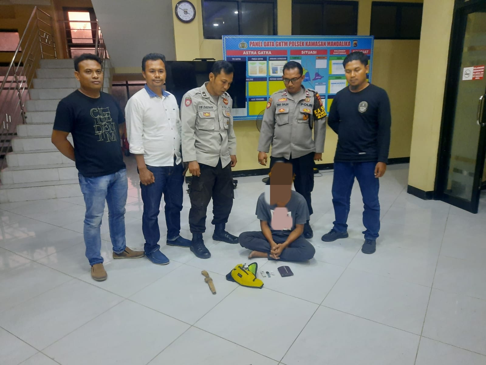 Kemudian Unit Reskrim Polsek Kawasan Mandalika bergerak mencari keberadaan terduga pelaku ISA dan pada Selasa 07/03/ 2023 sekitar pukul 18.30 wita, didapatkan informasi bahwa terduga pelaku sedang berada di Jalan Dusun Baturity Desa Kuta. Kemudian Unit Reskrim Polsek Kawasan Mandalika langsung bergerak dan menangkap terduga pelaku di lokasi tersebut tanpa perlawanan.