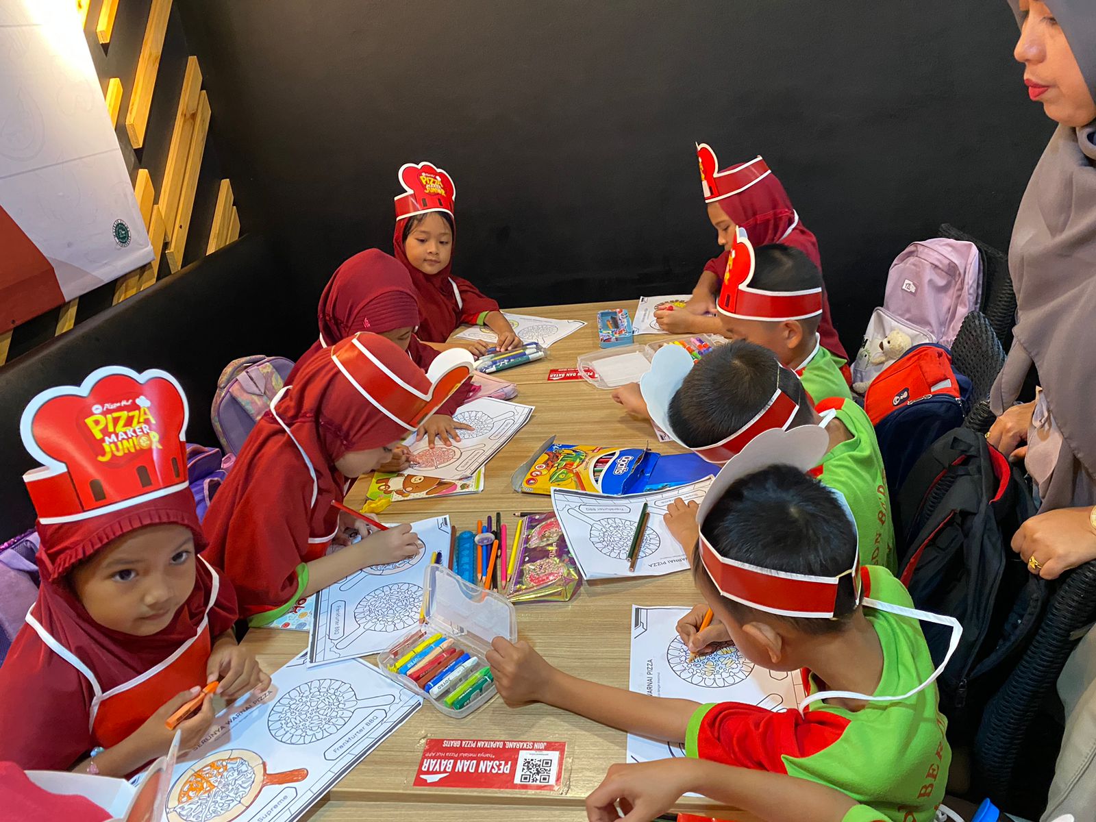 Kegiatan di Pizza HUT tersebut diisi dengan Lomba mewarnai, hingga memasak Pizza dengan kreasi masing – masing. Anak-anak diajari langsung, apa saja komposisi pizza. Termasuk cara pembuatannya. Paling menyita perhatian anak-anak, ketika mereka punya kesempatan menata isian pizza. Dalam kegiatan ini para pelajar didampingi Guru pendamping dan Kepala Sekolah, Kamis (09/03/2023).
