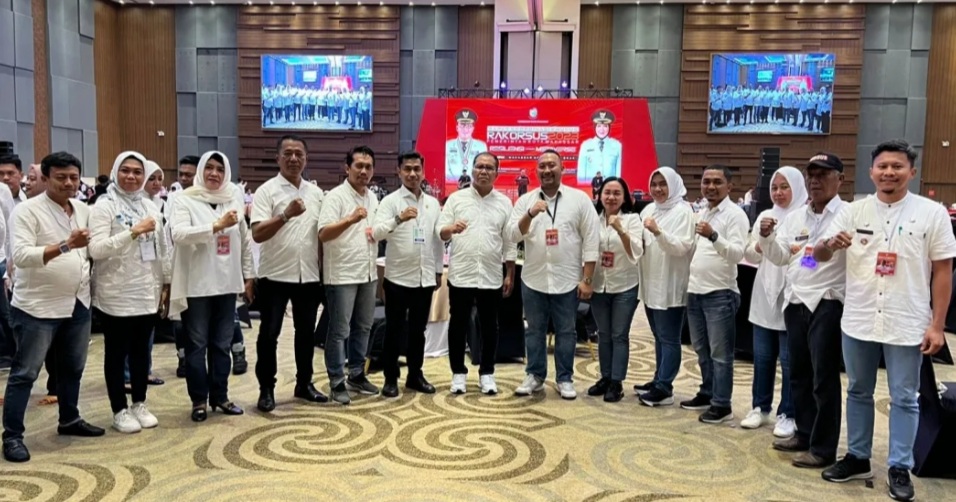 BN Online, Makassar—Camat Panakkukang Andi Pangerang Nur Akbar bersama Sekcamnya Abdul Muis menghadiri kegiatan Rapat Koordinasi Khusus di Hotel Four Points by Sheraton, Selasa (14/3/2023).