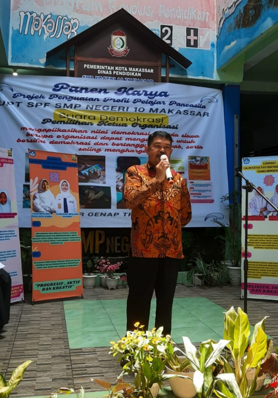 BN Online, Makassar — UPT SPF SMPN 10 Makassar menggelar Panen Karya Proyek Penguatan Profil Pelajar Pancasila (P5), Sabtu (18/3/2022). Tak tanggung-tanggung, kegiatan ini mengangkat 3 tema yaitu Kewirausahaan, Suara Demokrasi, dan Gaya hidup berkelanjutan.