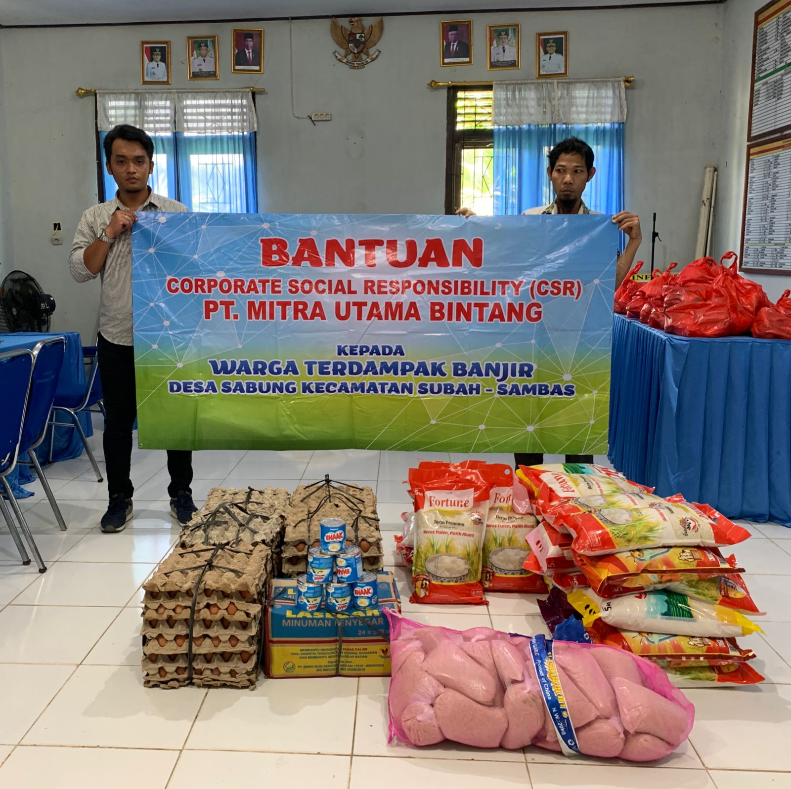 Untuk meringankan beban masyarakat PT.MUB juga memberikan berupa paket sembako kepada warga terdampak banjir didesa sabung, kecamatan Subah, kabupaten Sambas, propinsi Kalimantan barat, yang langsung diserahkan kepada pemerintah desa setempat di kantor desa.Jum’at,17/03/2023.