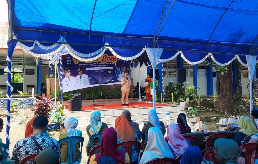 BN Online, Makassar – UPT SPF SMPN 16 Makassar menggelar Gebyar Pentas Seni. Kegiatan pembelajaran itu merupakan implementasi Kurikulum Merdeka yang dicanangkan Kementerian Pendidikan dan Kebudayaan RI sekaligus implementasi 18 Revolusi pendidikan kota Makassar