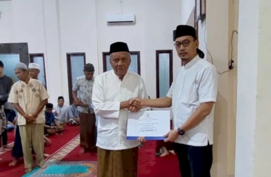 Pada kesempatan itu juga, Andi Zulkifly juga menyerahkan bantuan pemerintah kota kepada pengurus masjid.