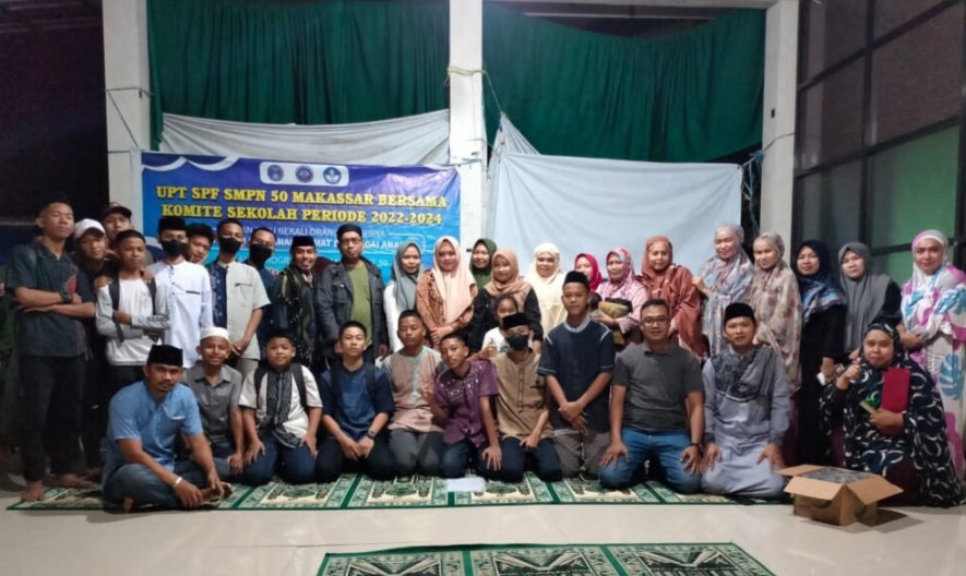 BN Online, Makassar–-UPT SPF SMP Negeri 50 Makassar, melaksanakan Buka puasa bersama dengan sejumlah siswa, orang tua, pengurus Komite, dan tokoh masyarakat sekitar lingkungan sekolah, Sabtu (08/04/2023).