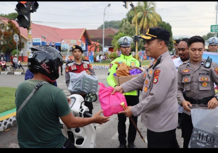 Di Simpang Empat Gunung Dua, Kapolres Bima Kota Pimpin Bagi-bagi 200 Paket Takjil pada Pengendara