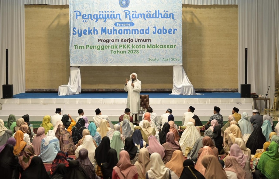BN Online, Makassar,– TP PKK Kota Makassar menggelar pengajian Ramadan bersama pendakwah Syekh Muhammad Jaber, Sabtu (1/04/2023).