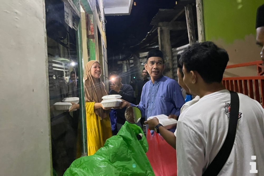 Terlihat Politisi Partai NasDem itu memasuki sejumlah lorong-lorong sempit dengan membawakan makanan kepada warga. Sesekali dia membangunkan warga yang masih tertidur dengan megetuk-ngetuk pintu rumah ataupun jendela.
