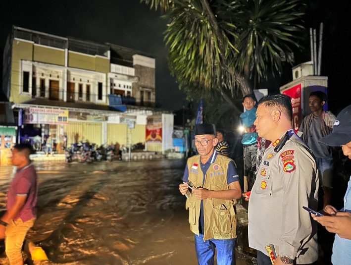 Kapolres Bima Kota AKBP Rohadi bersama pejabat Pemkot Bima, juga memantu debit air di beberapa sungai.