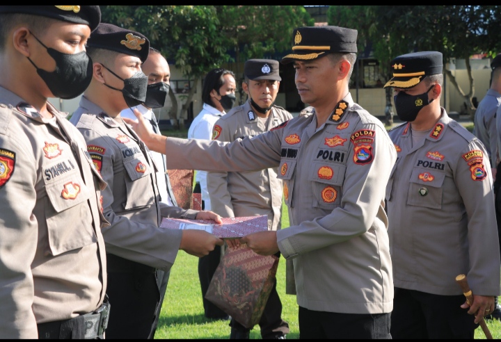 Dalam penyerahan penghargaan kepada anggota Polres Sumbawa Barat Kapolda NTB yang diwakili oleh Karo SDM Polda NTB Kombes PolBoro Windu Danandito,S,IK,.M.AP yang di dampingi oleh Kapolres Sumbawa Barat AKBP Heru Muslimin S.IK.MIP.