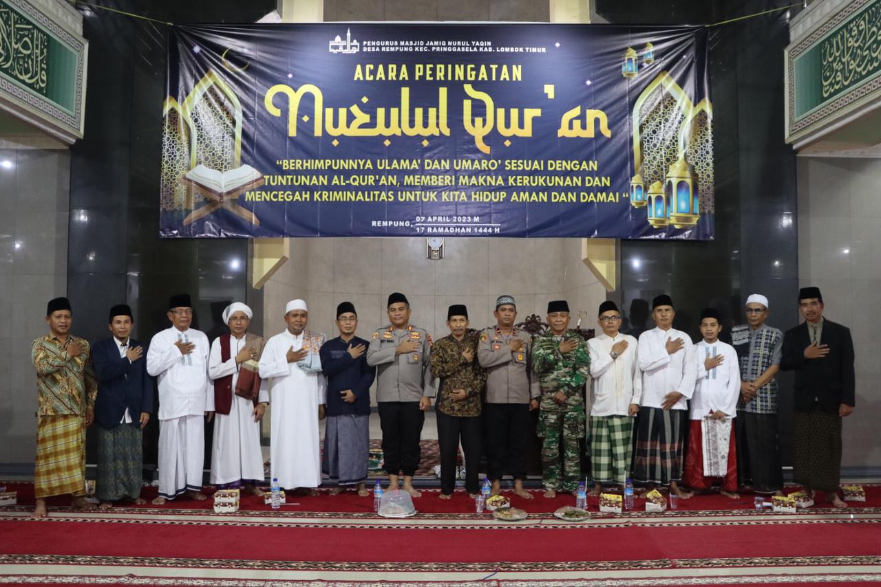 Bidik Nasional.id – Lombok Timur – Kapolres Lombok Timur AKBP Hery Indra Cahyono S.H, S.I.K, M.H hadiri Nuzulul Qur’an di Masjid Jamiq Nurul Yaqin Desa Rempung.