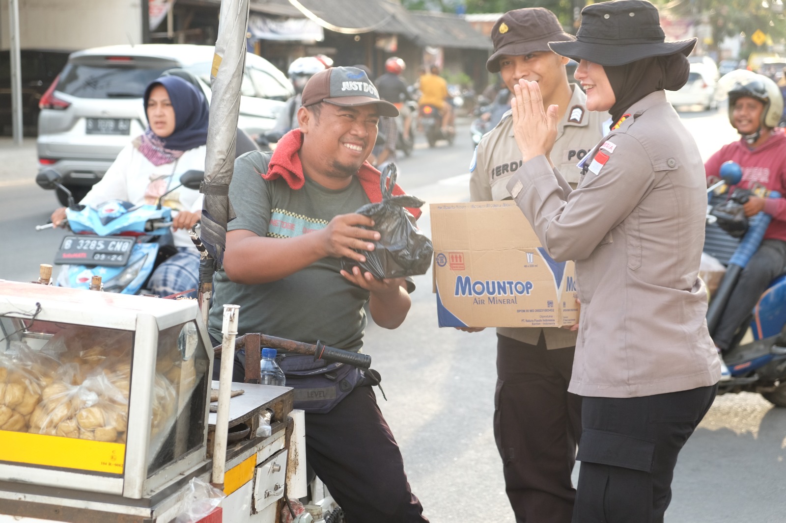 Selain turun ke panti asuhan para perwakilan Personel Satgas Minusca 5 turun langsung memberikan takjil kepada para pengendara sepeda motor maupun mobil yang melintas di Jalan raya di jalan menuju Ciledug. hal tersebut disambut baik oleh masyarakat sekitar maupun pengguna jalan yang menerima pembagian takjil tersebut.