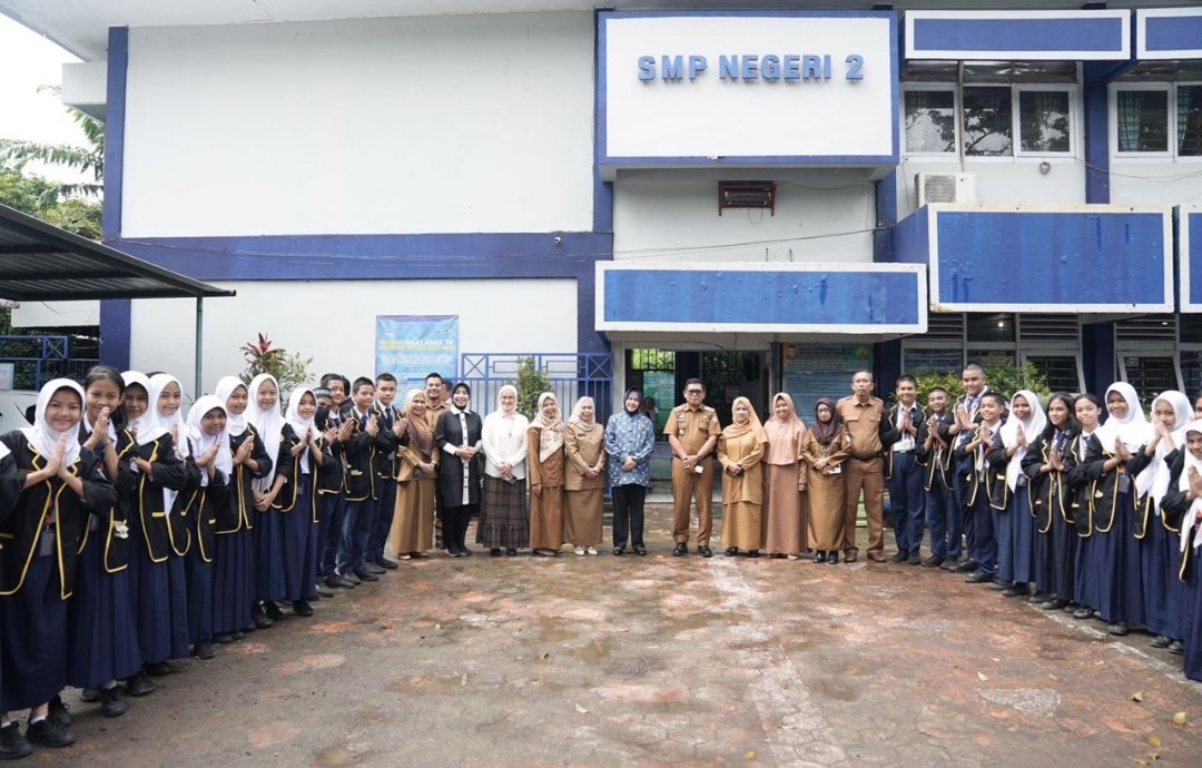 BN Online, Makassar—Bunda PAUD Kota Makassar Indira Yusuf Ismail menyambangi dua Sekolah Menengah Pertama (SMP) Negeri, yakni SMP Negeri 6 Makassar dan SMP Negeri 2 Makassar, Selasa (11/04/2023).
