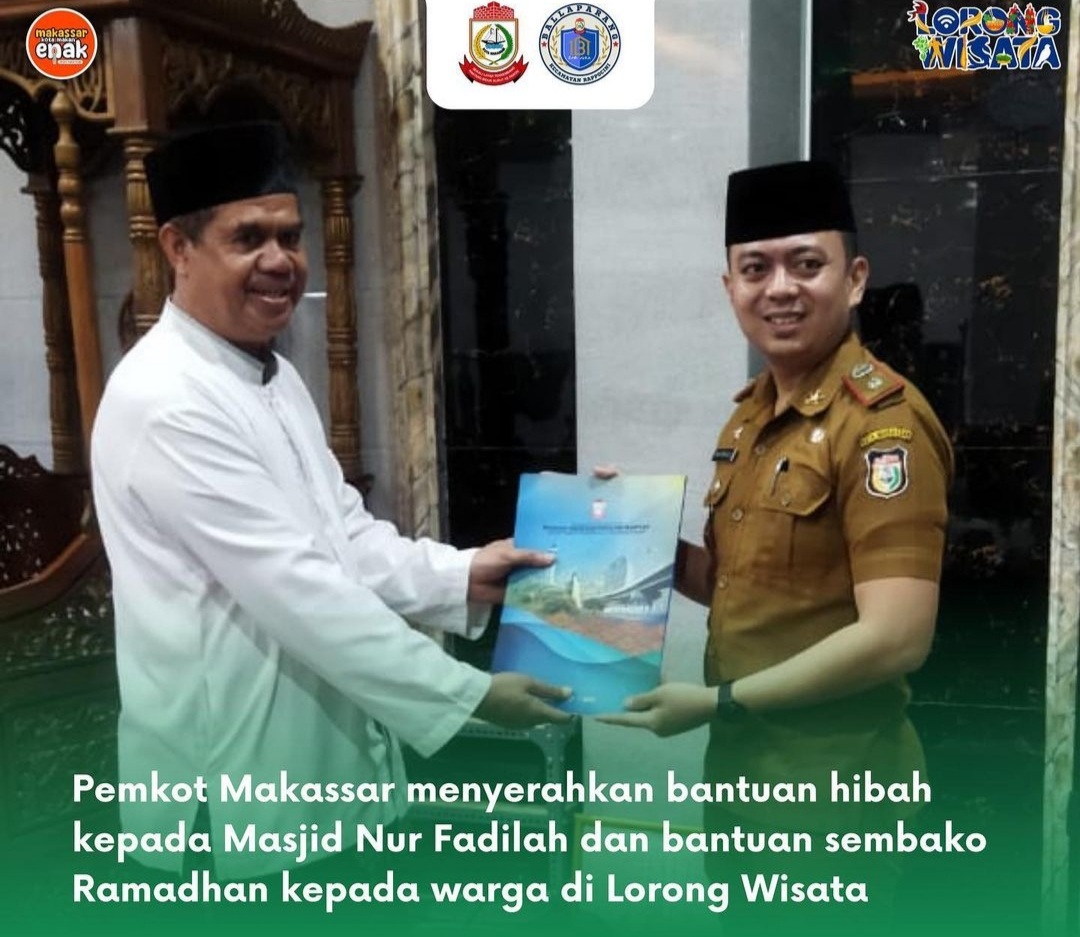 BN Online, Makassar — Pemerintah Kota Makassar Melalui Pemerintah Kelurahan Ballaparang Kecamatan Rappocini menyerahkan bantuan hibah kepada Masjid Nur Fadilah yang berada di Lorong Wisata Lagos Kelurahan Ballaparang.
