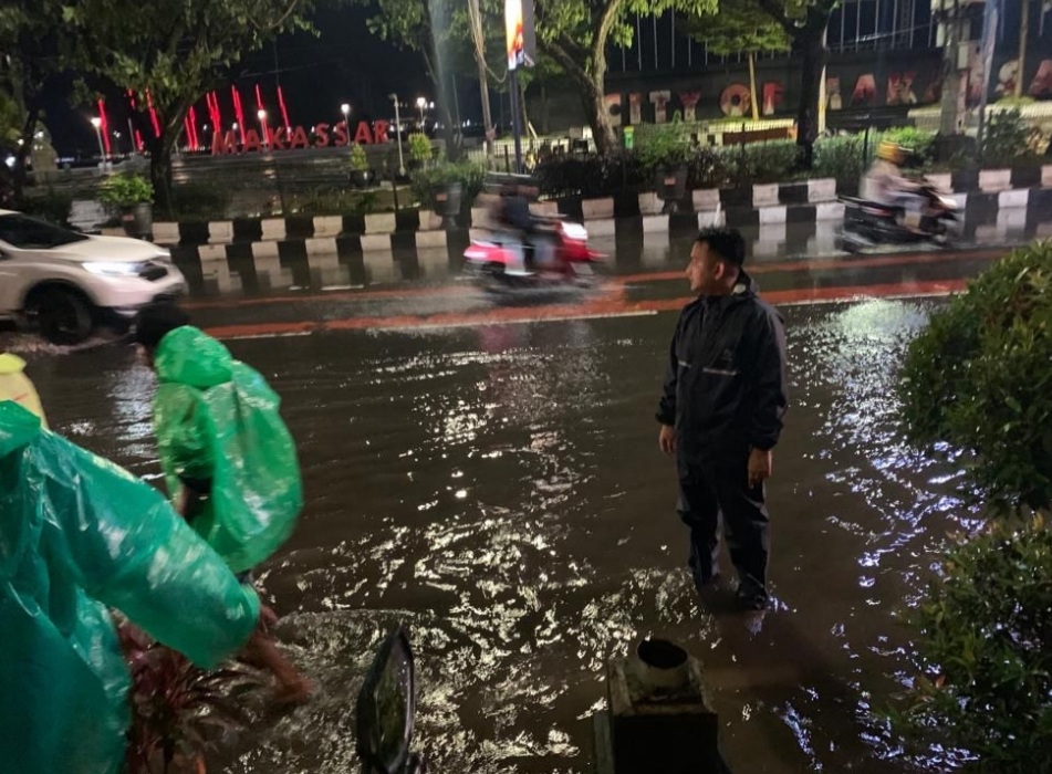 BN Online, Makassar—Akibat volume hujan yang tinggi mengakibatkan genangan air. Di Kecamatan Ujung Pandang ditemukan genangan air di beberapa ruas jalan.