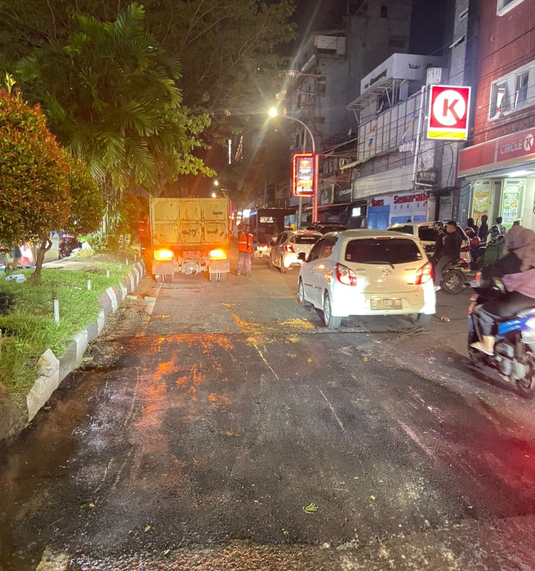 BN Online, Makassar—Satuan Tugas (Satgas) Sapu Lubang Dinas Pekerjaan Umum (DPU) Kota Makassar kembali melakukan pemeliharaan jalan di jalan penghibur, Sabtu (15/4/2023) malam.
