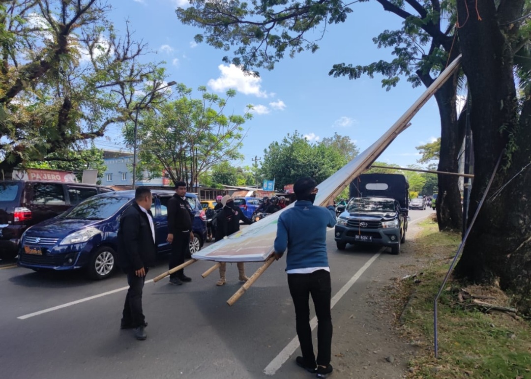 ²BN Online, Makassar—Hari pertama kerja pasca libur Lebaran Idul Fitri 1444 H, Badan Pendapatan Daerah Kota Makassar menggelar penertiban reklame di beberapa ruas jalan protokol di Kota Makassar, Rabu 26 April 2023.