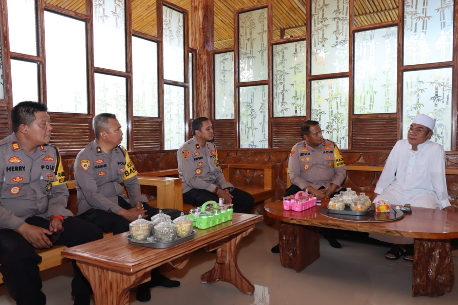Kapolres Lombok Tengah bersama rombongan disambut langsung oleh Pimpinan Ponpes Yatofa Bodak TGH. Fadli Fadiil Tohir langsung di kediamannya.