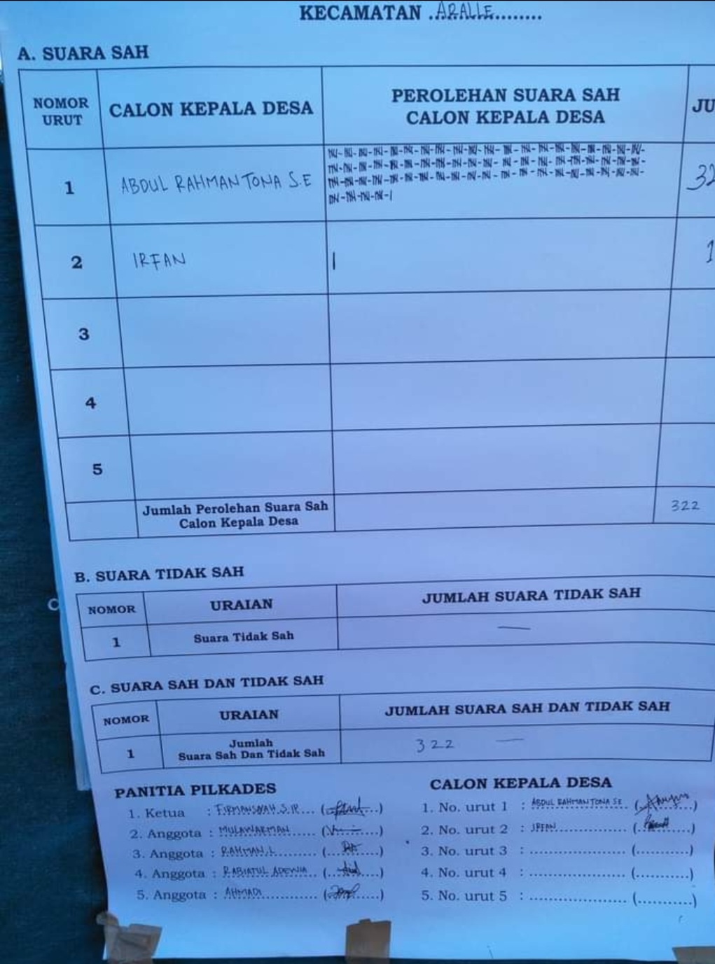 Irfan sebanyak 1 suara Total 322 suara.