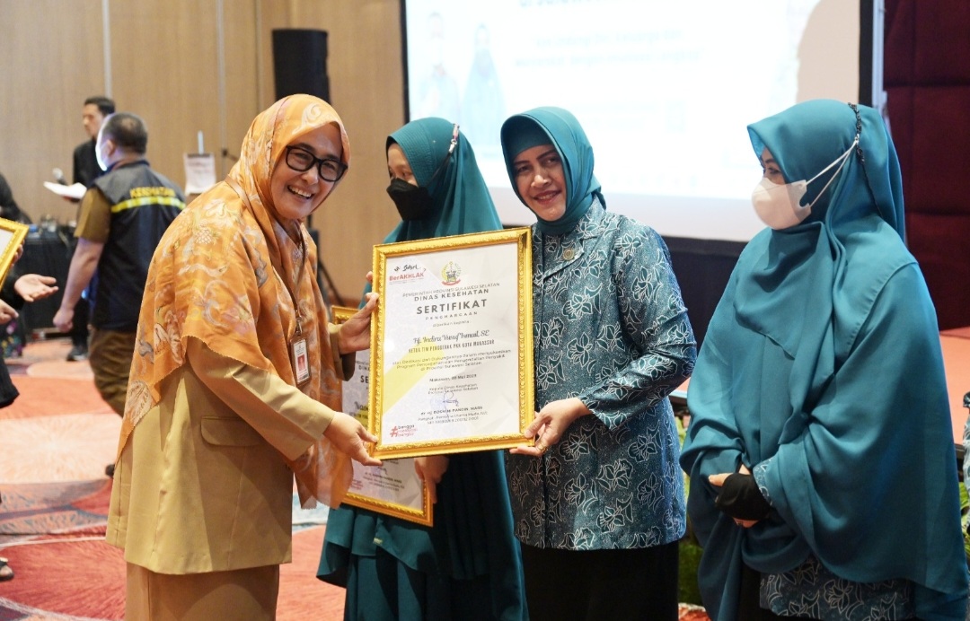 Penghargaan itu diserahkan langsung oleh Ketua TP PKK Provinsi Sulawesi Selatan, Naoemi Octarina, di sela-sela kegiatan pencanangan Pekan Imunisasi Dunia Tingkat Provinsi Sulawesi Selatan di Hotel Gammara, Selasa (9/05/2023).