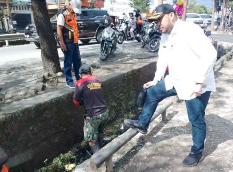 BN Online, Makassar-–Camat Panakkukang, Andi Pangeran Nur Akbar, memantau langsung aktivitas satgas kebersihannya, Rabu, 10 Mei 2023. Satgas Panakkukang kali ini melakukan pembersihan drainase di Jalan Pengayoman, Kelurahan Pandang.