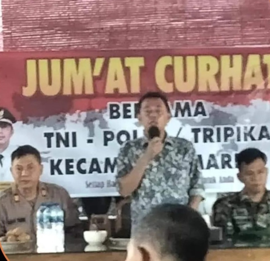 BN Online, Makassar-–Camat Mariso, Juliaman menghdiri Jumat Curhat TNI, Porli, Tripika Kecamatan Mariso, di Jalan Rajawali, Kelurahan Panambungan Kecamatan, Jumat (12/05/2023).