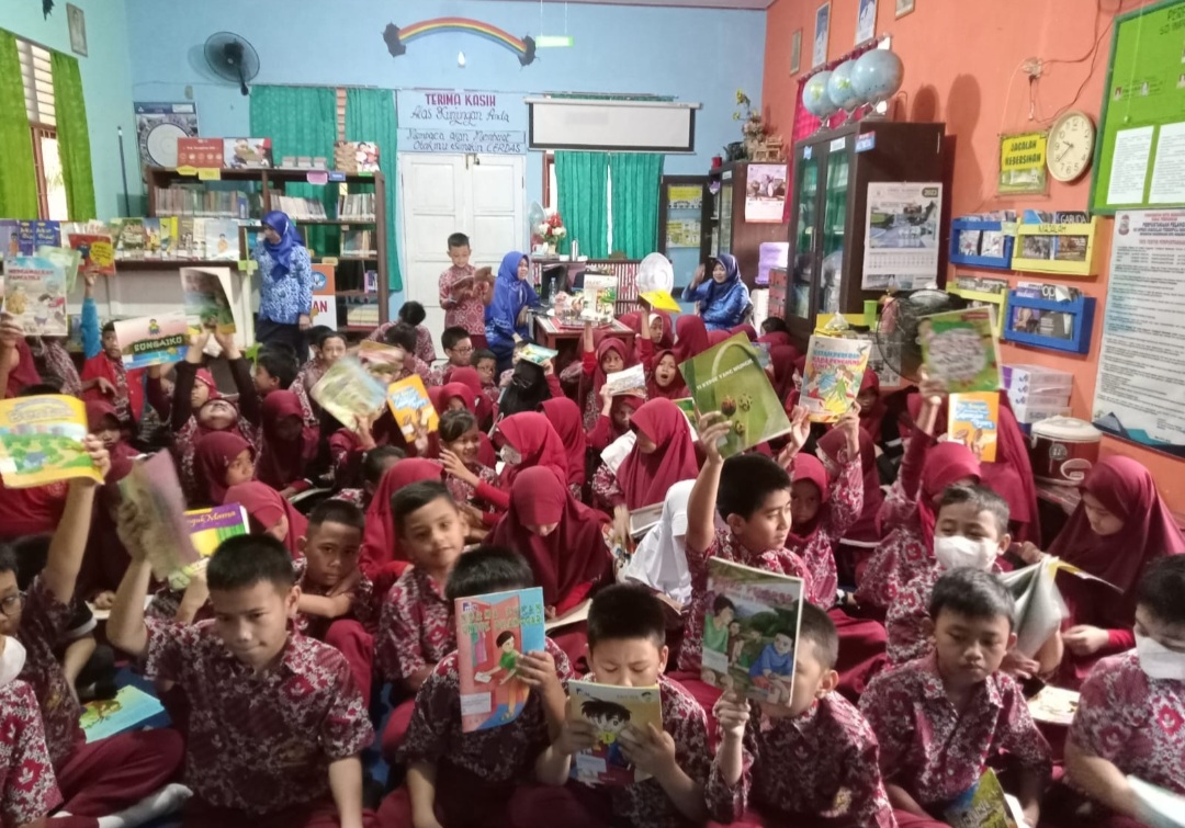 “Dihari Perpusnas ini agar peserta didik sejak dini untuk selalu menggemar membaca dan mengajak untuk sering keperpustakaan “urainya