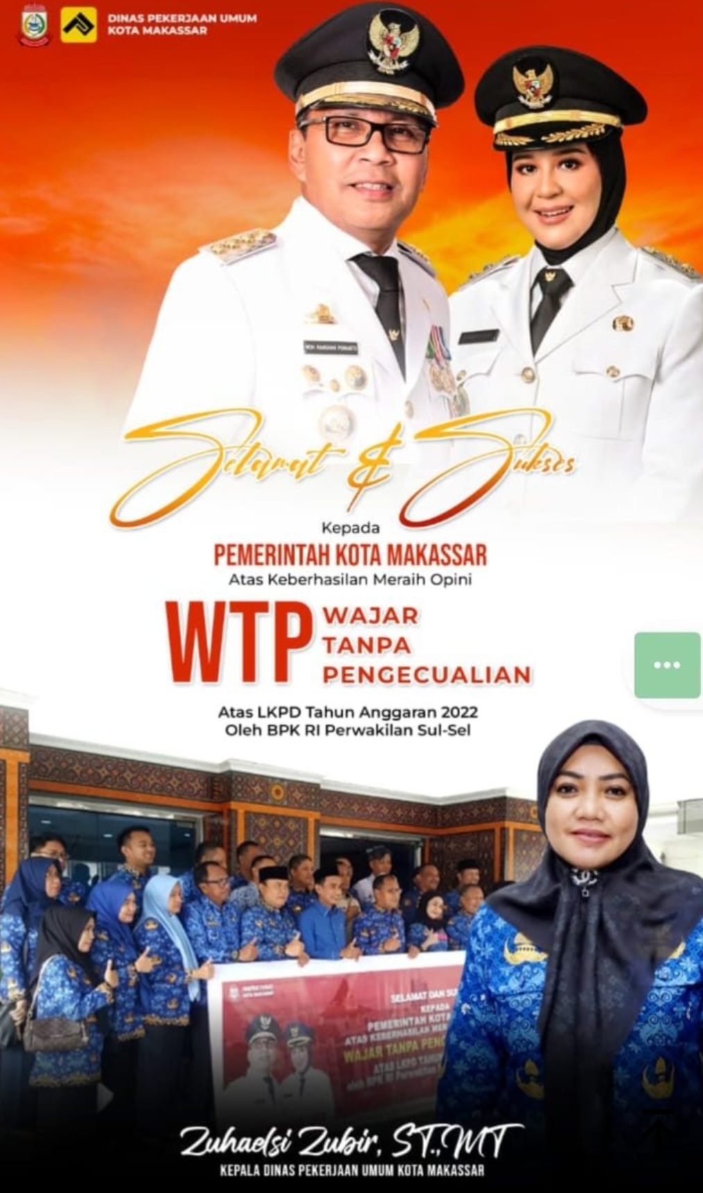 Keberhasilan ini disampaikan oleh Kepala Dinas Pekerjaan Umum (PU) Makassar, Zuhaelsi Zubir ST.MT, yang memberikan ucapan selamat kepada Pemerintah Kota Makassar atas prestasi tersebut. Kamis 18 Mei 2023