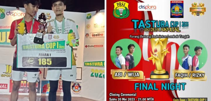 Turnamen badminton Tastura Cup 1 ini digelar di Desa Aik Mual bertempat di gedung aula serba guna kantor desa Aik Mual Praya Lombok Tengah, diikuti oleh 32 peserta dari berbagai desa