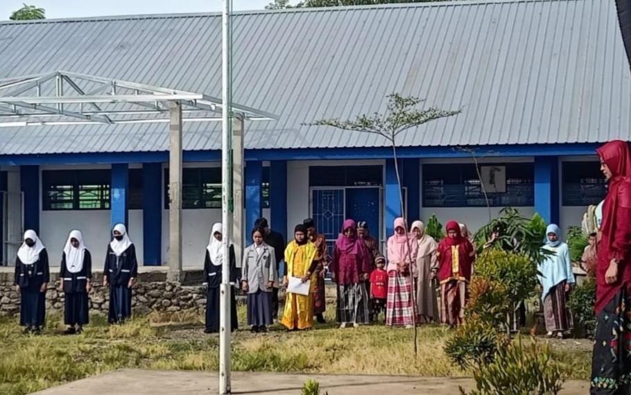 Seperti saat upacara bendera di lapangan sekolah, dimana para pengajar guru dan sebagian peserta didik kompak memakai beragam pakaian adat tradisional lengkap dengan assesorinya.