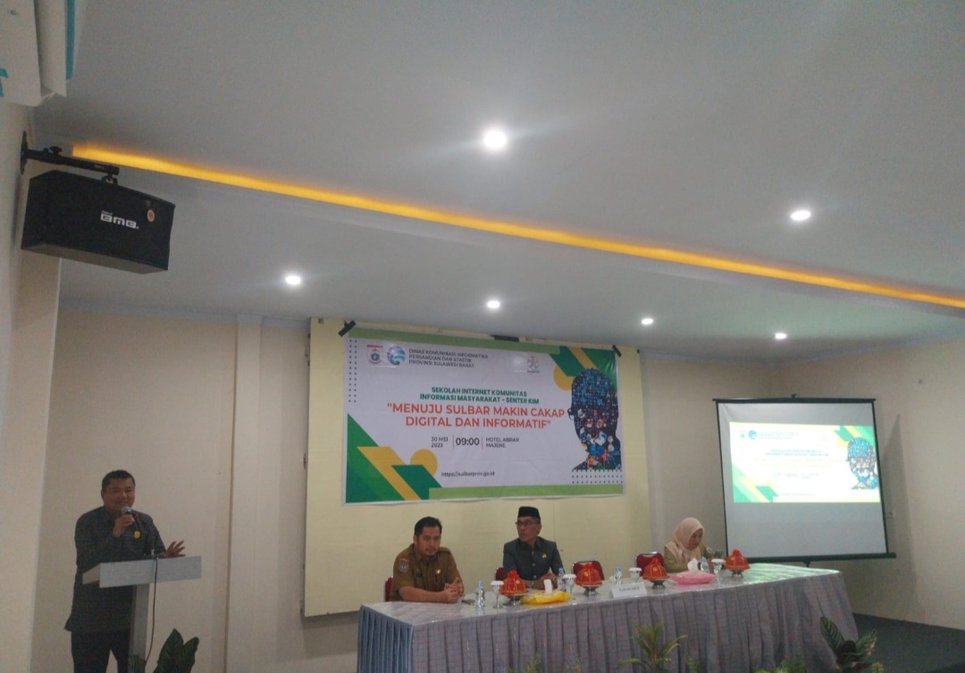 BN Online, Mejene — Dinas Komunikasi Informatika Persandian Dan Statistik Sulawesi Barat menggandeng Relawan TIK Sulbar menggelar Sekolah Internet Komunitas Informasi Masyarakat (Senter KIM) dengan tema “Menuju Sulbar Makin Cakap Digital Dan Informatif”. Berlangsung di Hotel Abrar Majene, Selasa, 30 Mei 2023