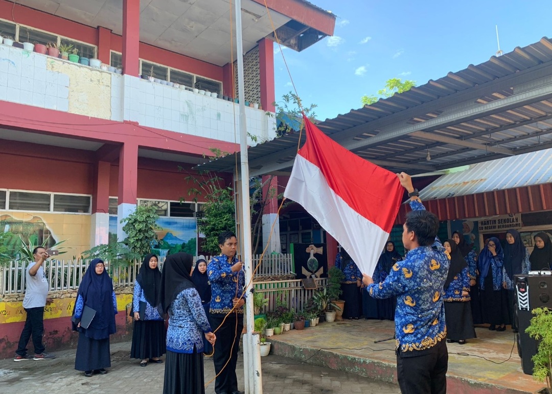 BN Online, Makassar—Upacara peringatan hari lahir Pancasila tahun 2023 di halaman SD Negeri Beroanging Kecamatan Tallo Kota Makassar dilaksanakan pada Kamis 01 Juni 2023 Mulai Pukul 07.30 WIB dengan pembina upacara Fatimah, S.Pd.