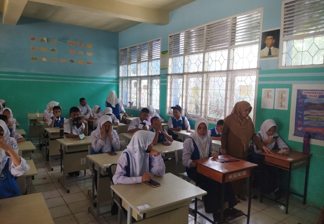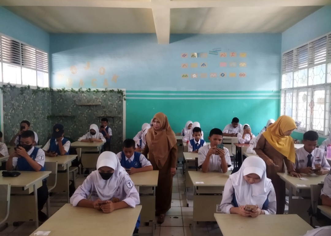 BN Online, Makassar—Suasana berlangsung tertib hari kedua pelaksanaan PAS Tahun Pelajaran 2022/2023 UPT SPF SMPN 4 Makassar melaksanakan Penilaian Akhir Semester Genap melalui Online dan Android, (PAS)TP. 2022/2023 hari pertama, Senin (05/06/2023).