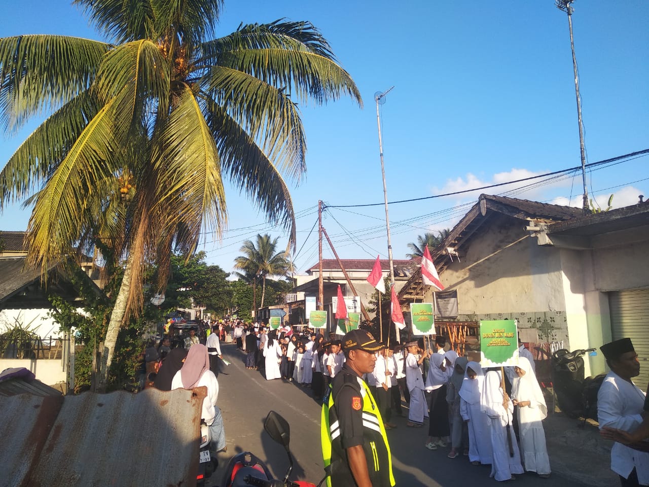 Ribuan peserta pawai ta’aruf dari 17 Dusun se desa Pengenjek,ribuan warga berpartisipasi memeriahkan pawai ta’aruf dengan rute jalan sepanjang 1km start depan Kantor Desa Pengenjek dan Finis di depan Masjid Beber.( BN 01)