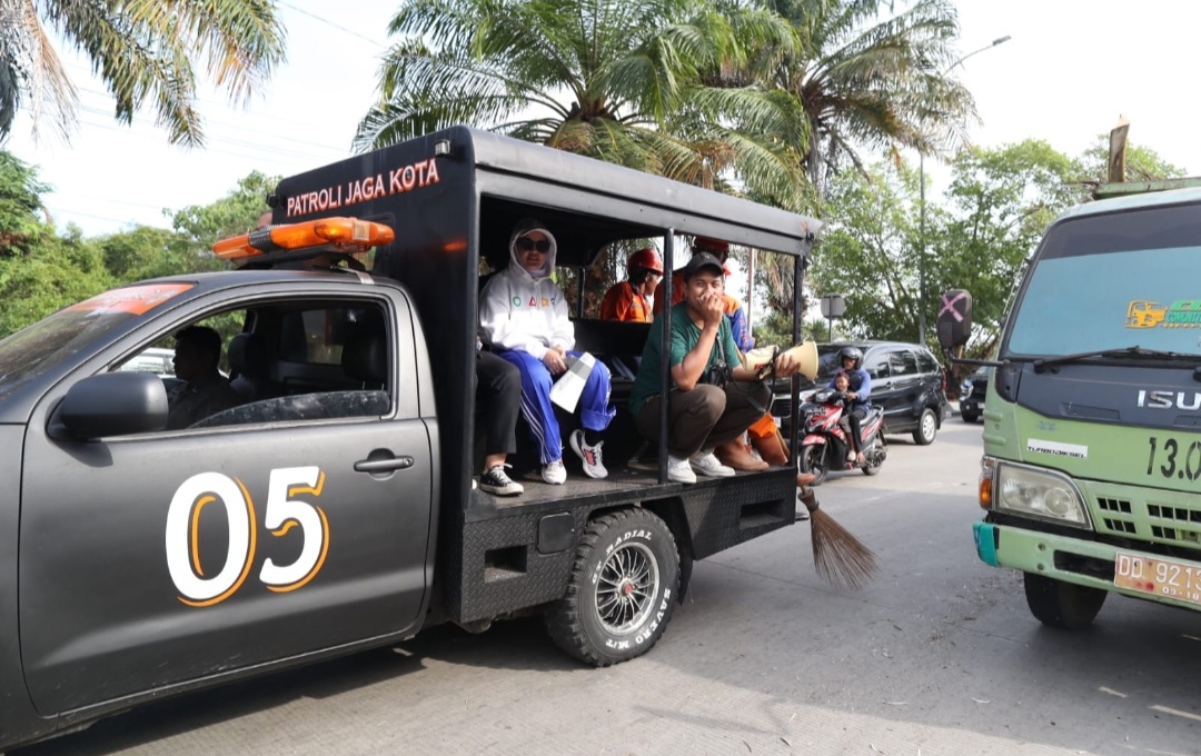 Sejak pukul 05.30 Wita, Fatmawati Rusdi telah berada di titik lokasi awal yakni di depan jajaran ruko dan perumahan Rolling Hills. Dengan menggunakan mobil patroli kota, ia mengitari lokasi bersih-bersih taman yang berjarak sekitar 2 KM.