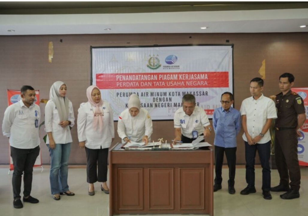 BN Online, Makassar—Perumda Air Minum (PDAM) Kota Makassar menggandeng Kejaksaan Negeri Makassar untuk pendampingan dalam bidang perdata dan tata usaha negara dengan melakukan penandatanganan MoU di Aula Tirta Dharma Perumda Air Minum Kota Makassar, Rabu (14/06/2023).