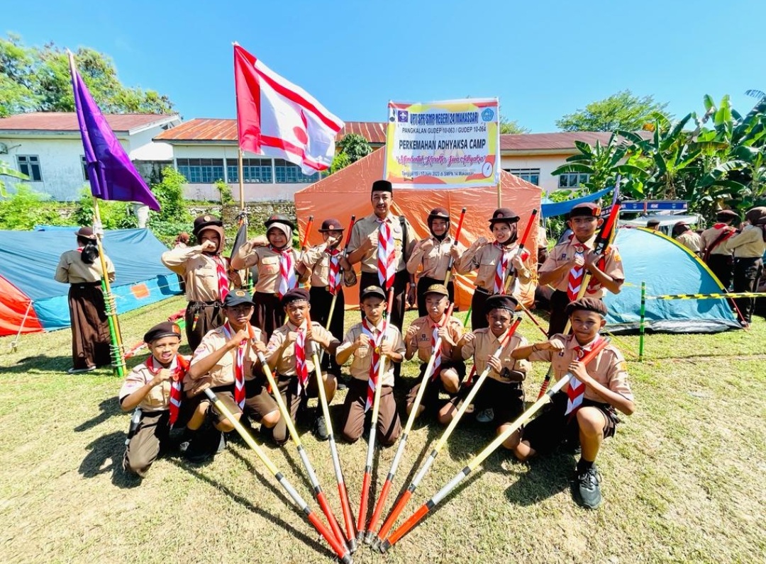 BN Online, Makassar—Musyawarah Kerja Kepala Sekolah (MKKS) lingkup SMP Negeri se-Kota Makassar terus memasifkan kegiatan Kepramukaan di kalangan pelajar. Hal itu dilakukan dengan menggandeng Kejaksaan Kejaksaan Tinggi Sulsel, dan Kejaksaan Negeri Kota Makassar menyelenggarakan Perkemahan Pramuka Adiyaksa Camp yang diikuti ratusan siswa Pramuka dari SMP Negeri se-Kota Makassar, 16 Juni 2023.