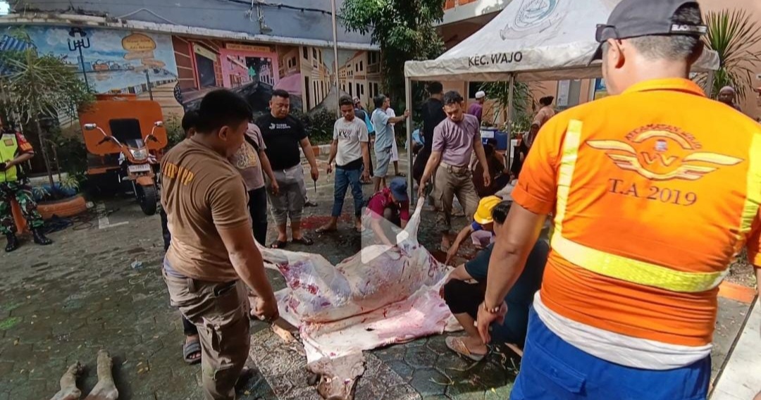 Penyembelihan hewan kurban ini dilakukan sebagai wujud kepedulian dan solidaritas masyarakat Kecamatan Wajo terhadap sesama yang membutuhkan.
