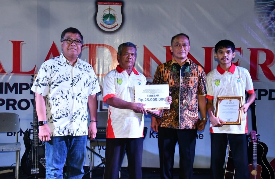 BN Online, Majene –– Pj. Gubernur Sulbar, Prof. Zudan Arif Fakrulloh menyerahkan penghargaan kepada dua putra daerah yang berprestasi di bidang olahraga, pada Gala Dinner di Lapangan Tenis BPMP Sulbar, Selasa, 4 Juli 2023.