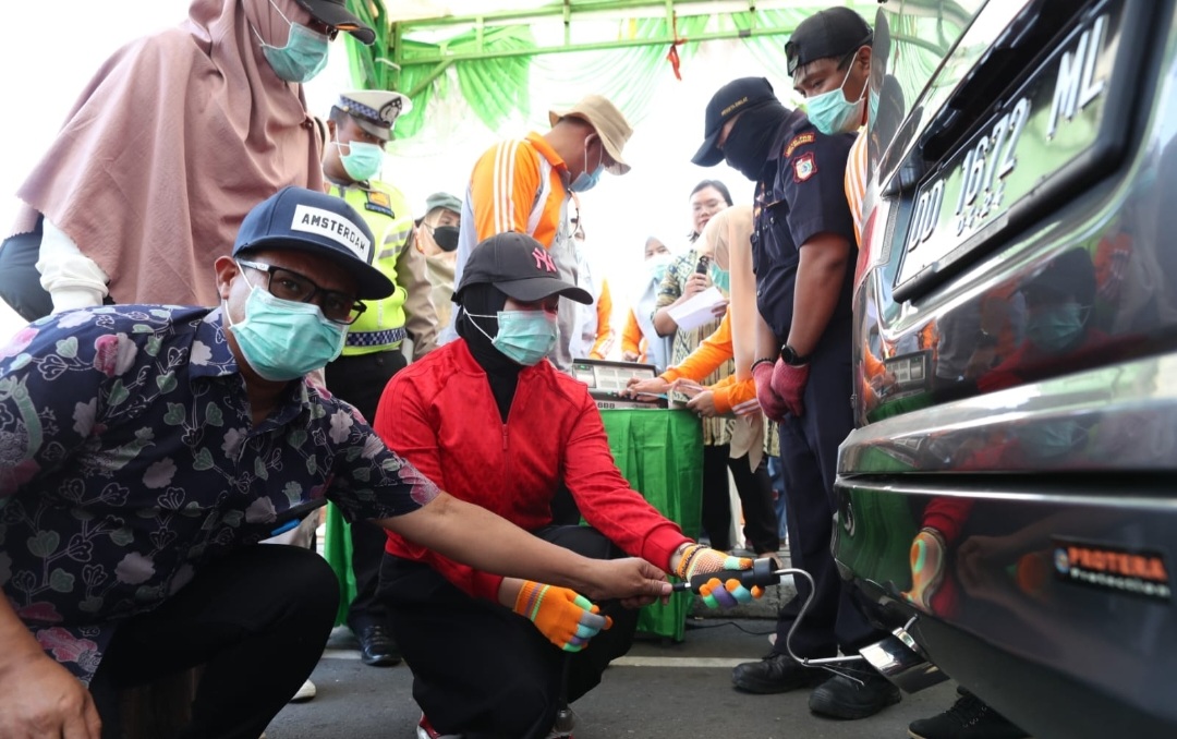 Sebagai simbolis, Wakil Wali Kota Makassar melaksanakan uji emisi kendaraan, yang melintas di depan Monumen Mandala, dan menempelkan stiker tanda kelulusan bagi kendaraan yang lulus emisi. (*)